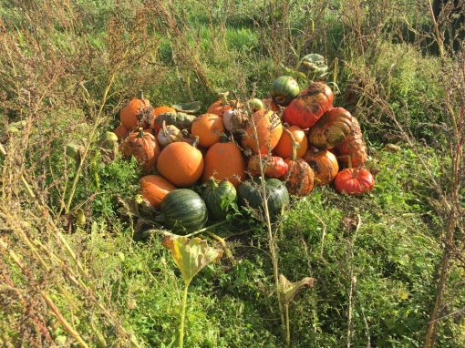 Das größte Problem in diesem Jahr sind aber die Wühlmäuse. Der trockene Sommer war für die Mäuseschar prima. Und vor dem Winter sorgen die kleinen Nager vor…….Sie haben uns aber doch noch ein Paar schöne Kürbisse übrig gelassen.